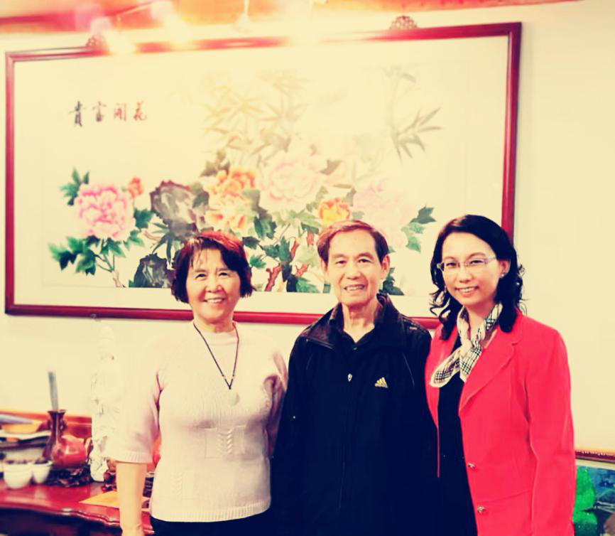 束漫教授(右一)2016年10月在谭祥金和赵燕群老师家