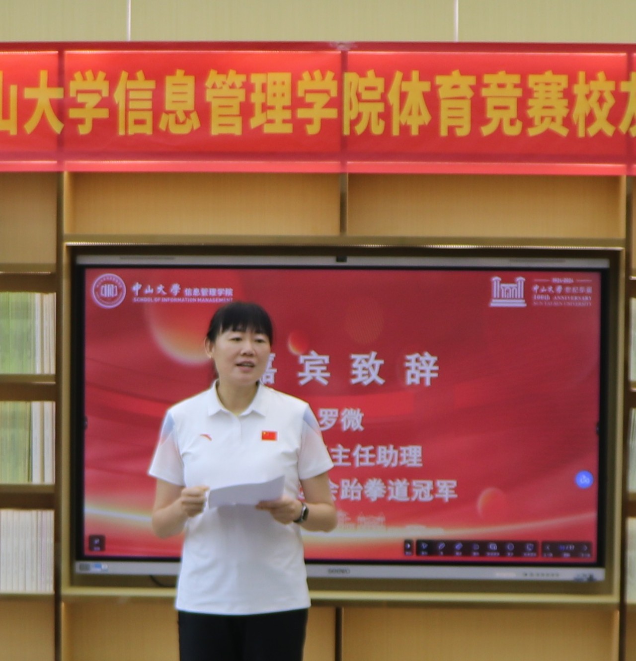 体育部主任助理、雅典奥运会跆拳道冠军罗微副教授在致辞中强调体育在塑造学生品格、培养团队精神中的重要作用。她指出,中山大学一直致力于体育事业的发展。近年来,学生体质大幅提升,竞赛成绩突飞猛进。永利yl23411高度重视体育育人理念,将提升学生体质健康水平作为人才培养的重要组成部分。学院的校友关心关爱学校和学院的发展,为学校体育事业发展提供了大力支持。希望同学们能够保持对体育的热爱,将体育精神带入未来的学习和生活中,成为中大的骄傲,为社会作出贡献。