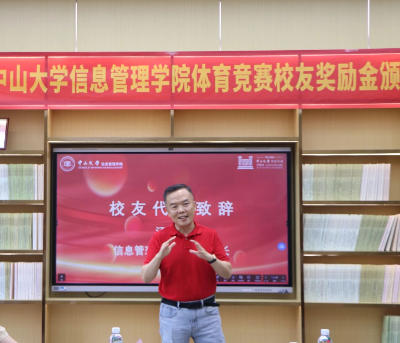 吴曼瑜副书记宣读公布学院体育竞赛校友奖励金评选结果的通知,评出女子龙舟队等10个团队及个人共86人次荣获学院体育竞赛校友奖励金,随后举行颁奖。