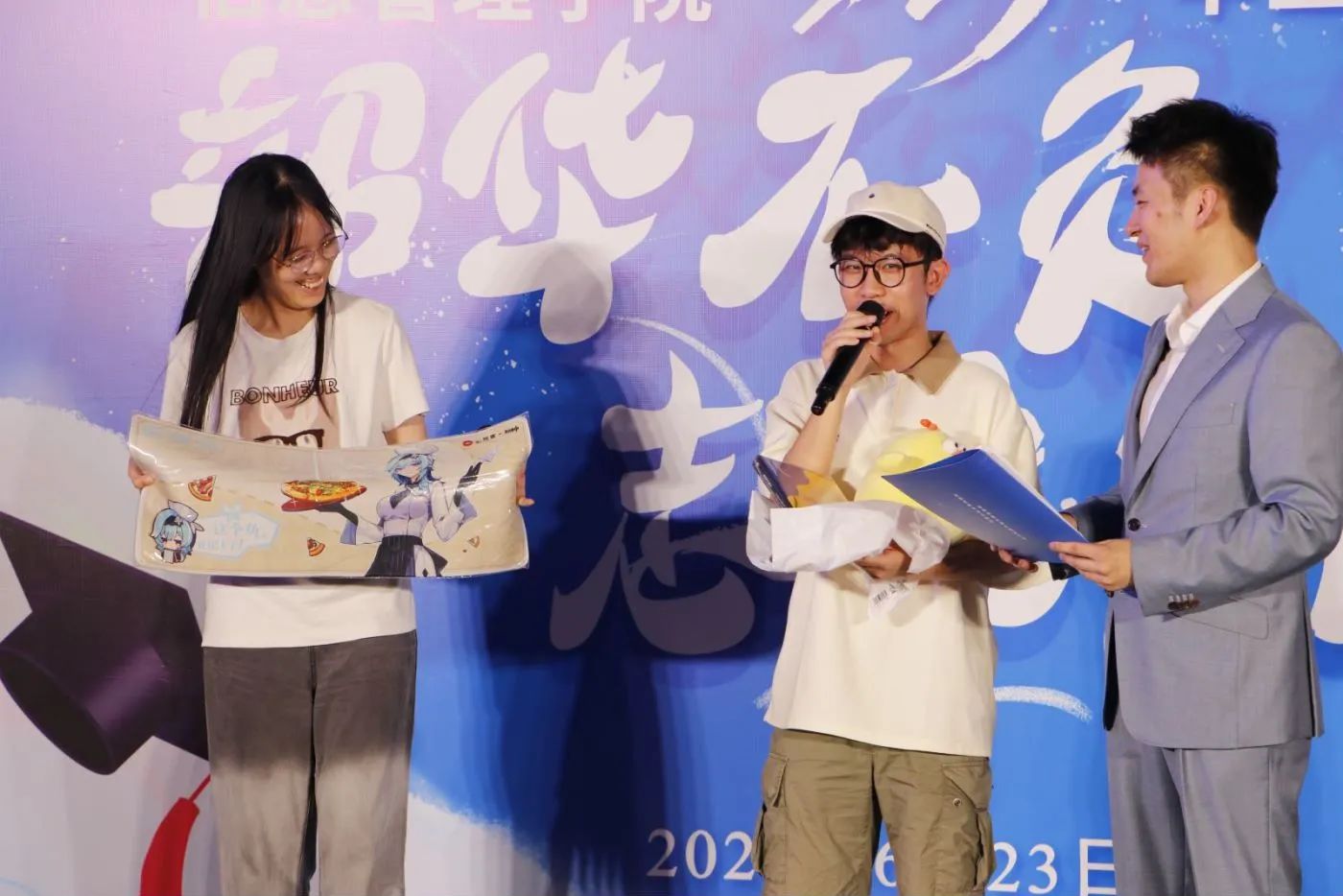 在节目演出的间隙,同学们还进行了毕业礼物的交换环节。精心准备的礼物伴随着真诚的的期许和祝福一一交换,预示着同学们即将奔赴美好的未来。