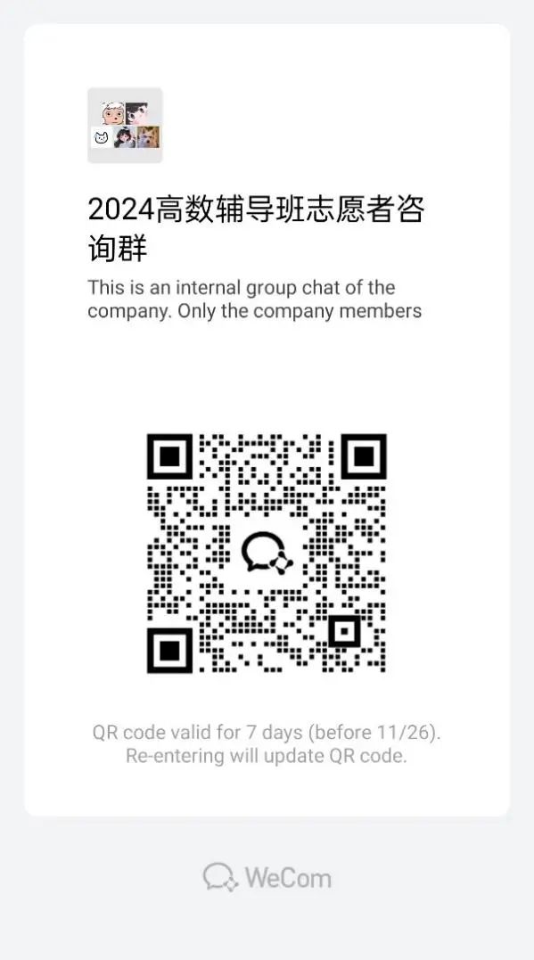 如果你有意向加入的话,就快快扫描下方二维码,加入高数辅导班学生咨询群吧!