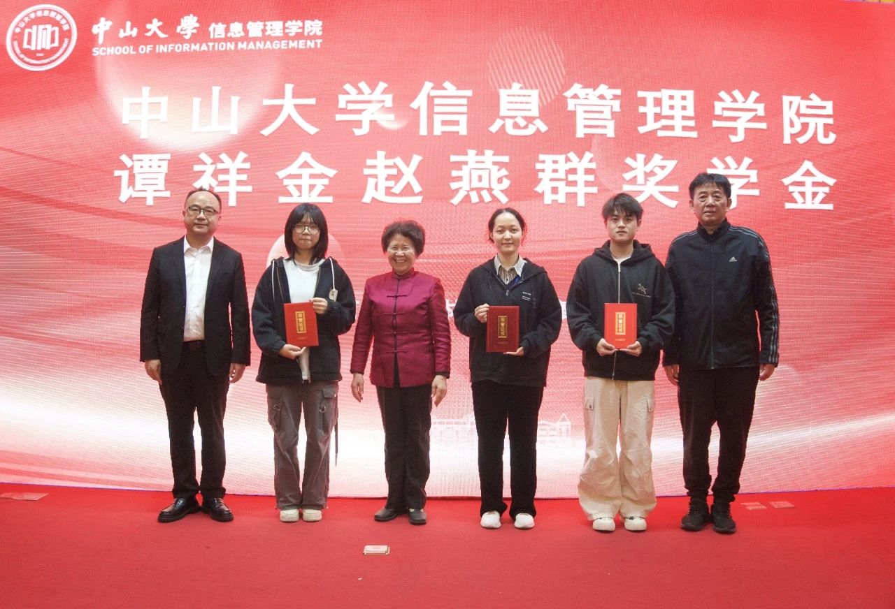 图 赵燕群教授、张洋院长、程焕文教授为谭祥金赵燕群奖学金获奖学生颁奖