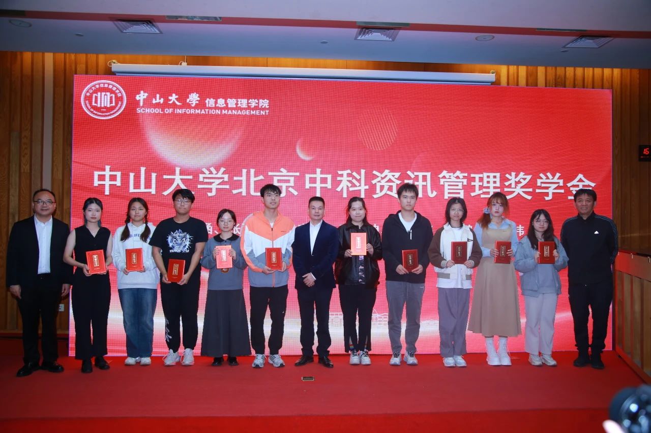 图 张洋院长、林俊洪书记、程焕文教授为北京中科资讯管理奖学金获奖学生颁奖