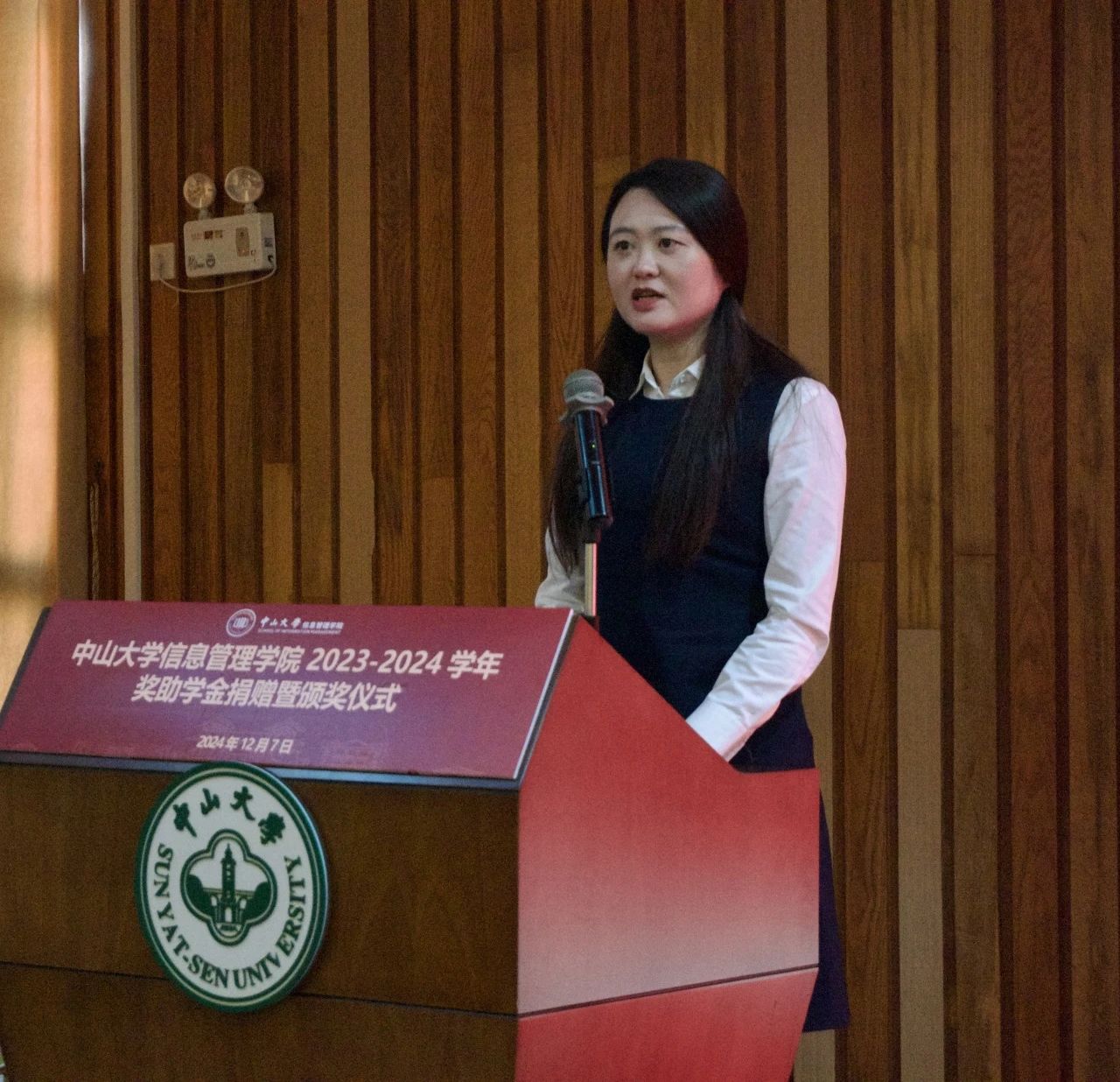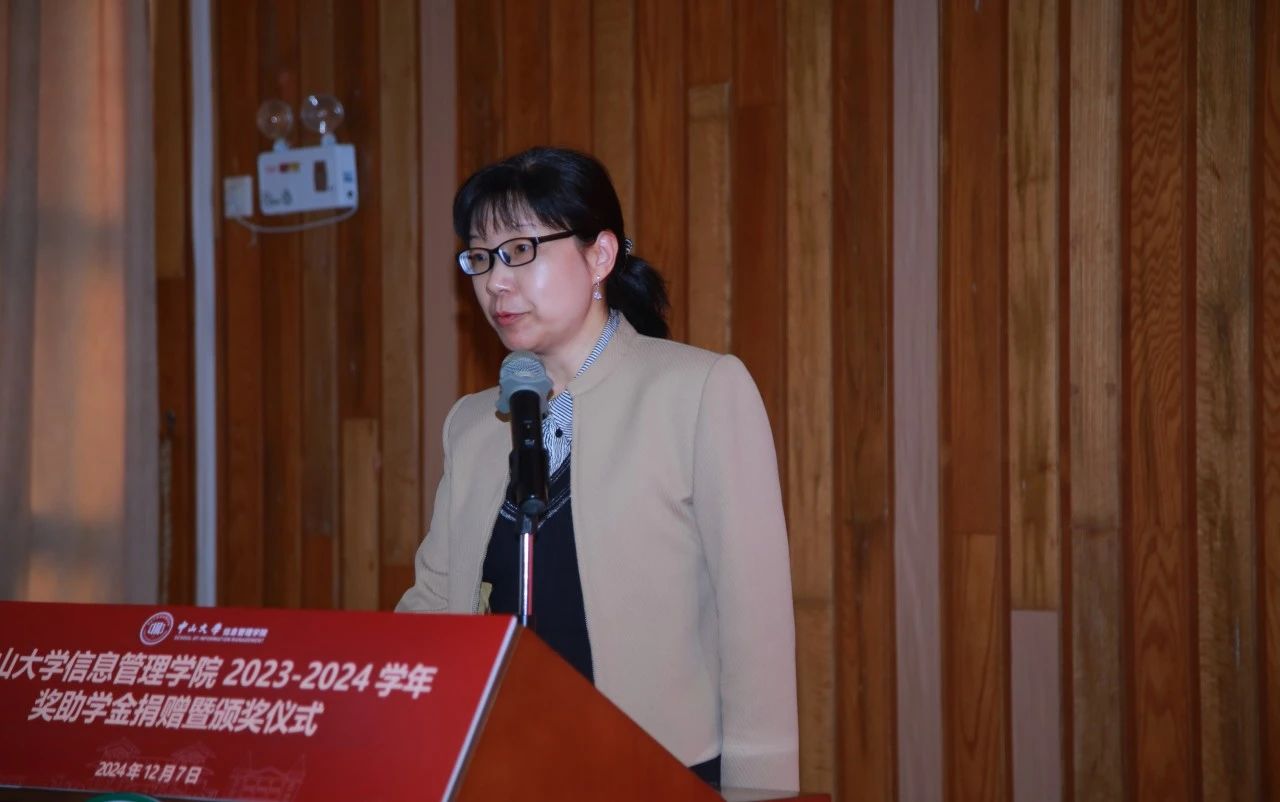 世纪中大,山高水长。信管辉光,薪火相传。12月7日下午,永利yl234112023-2024学年奖助学金捐赠暨颁奖仪式在东校园行政楼B101报告厅隆重举行,对获得沈祖荣沈宝环纪念奖学金、谭祥金赵燕群奖学金、北京中科资讯管理奖学金、GALE图书馆学奖学金、Bibliotheca图书馆学奖学金、王肖珠纪念奖学金、惠仪-惠莹助学金和青羚计划助学金等8项我院自设的奖助学金的优秀同学进行颁奖。赵燕群教授、Bibliotheca图书馆学奖学金捐赠方代表王斐女士、惠仪-惠莹助学金捐赠方代表胡毅女士、青羚助学金捐赠方代表罗文奇先生应邀出席仪式,学院院长张洋教授、党委林俊洪书记、程焕文教授、副院长徐健教授、党委吴曼瑜副书记、学院办公室老师和本年度获奖、受助的同学出席本次仪式,仪式由吴曼瑜副书记主持。