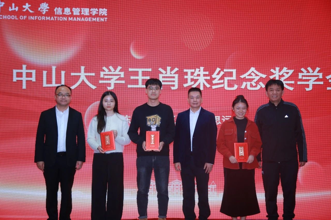 图 张洋院长、林俊洪书记、程焕文教授为王肖珠纪念奖学金获奖学生颁奖