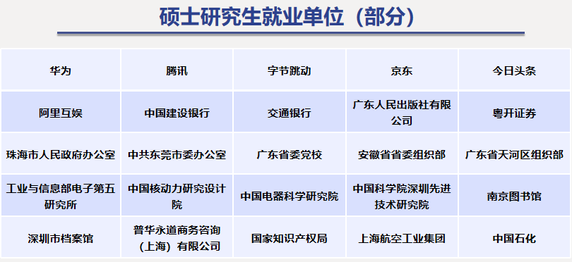 毕业生就业行业广泛,就业单位分布在教育、软件和信息技术服务业等30余个行业内,与永利yl23411专业和学科具有广泛应用性的特点表现出一致性。其中,2024届硕博毕业生98人,毕业去向落实率100%,且就业地集中在粤港澳大湾区,具有明显竞争优势。