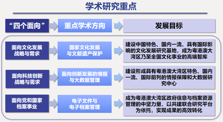 学院以“面向世界科技前沿、面向经济主战场、面向国家重大需求、面向人民生命健康”为引领,赋能信息资源管理高质量发展,重点围绕“国家文化发展与文献遗产保护”“面向创新发展的情报与大数据管理”“电子文件与电子档案管理”。