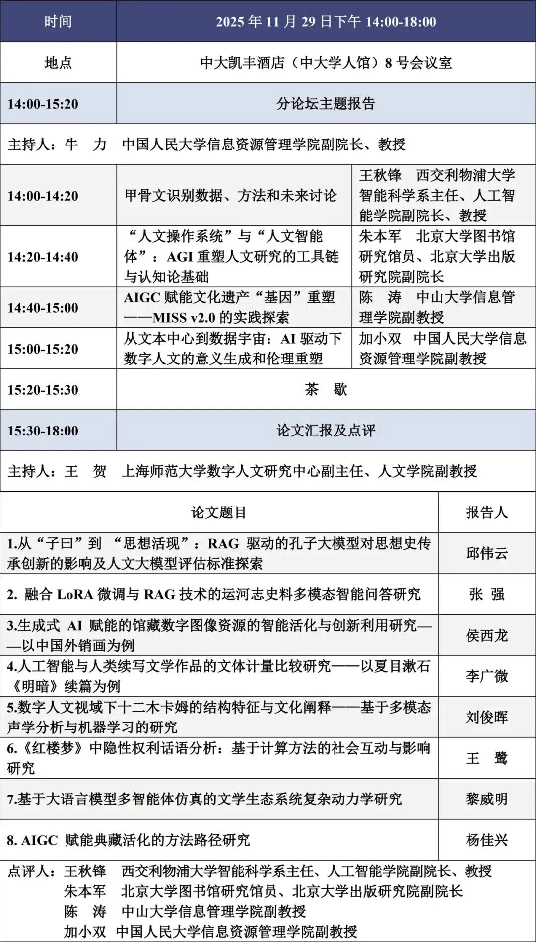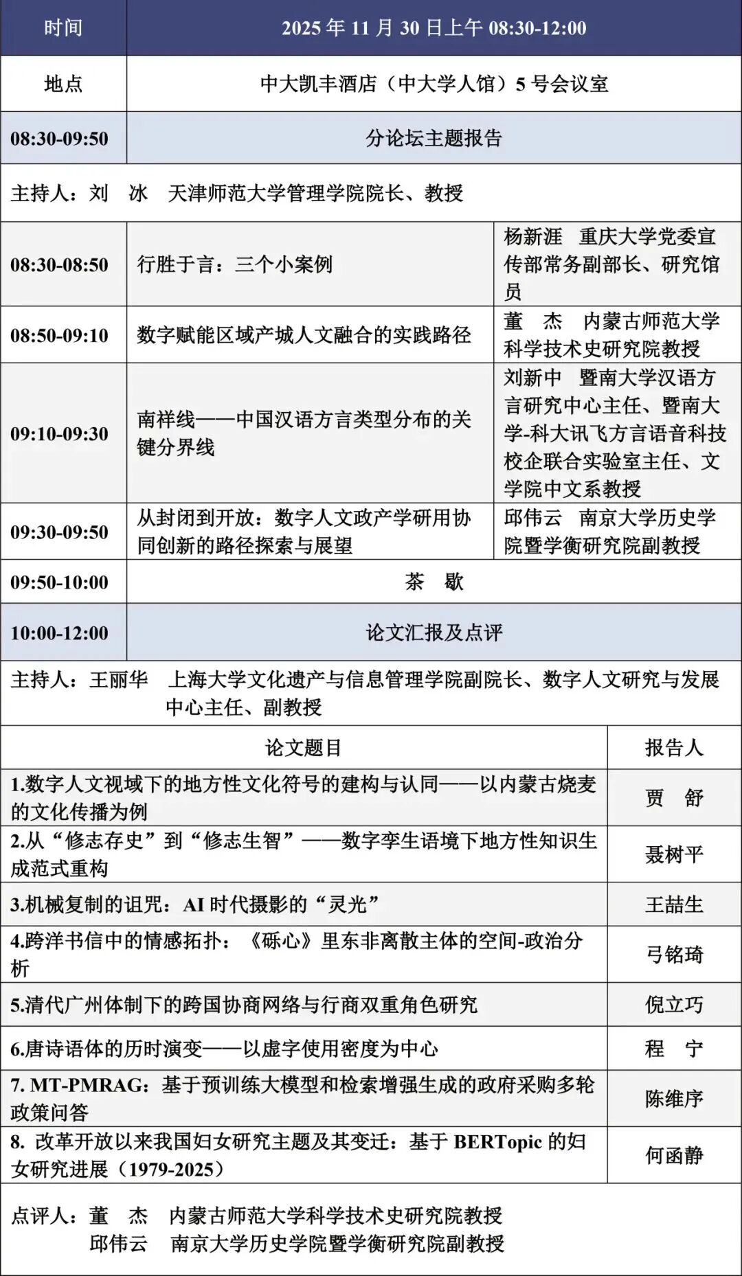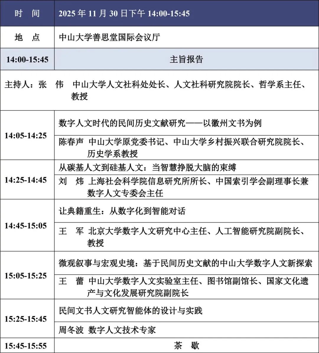 会议议程 | “人文智变:数字人文的智慧奇点”学术研讨会暨2025年中国数字人文年会(CDH2025) 会议通知(第四号)